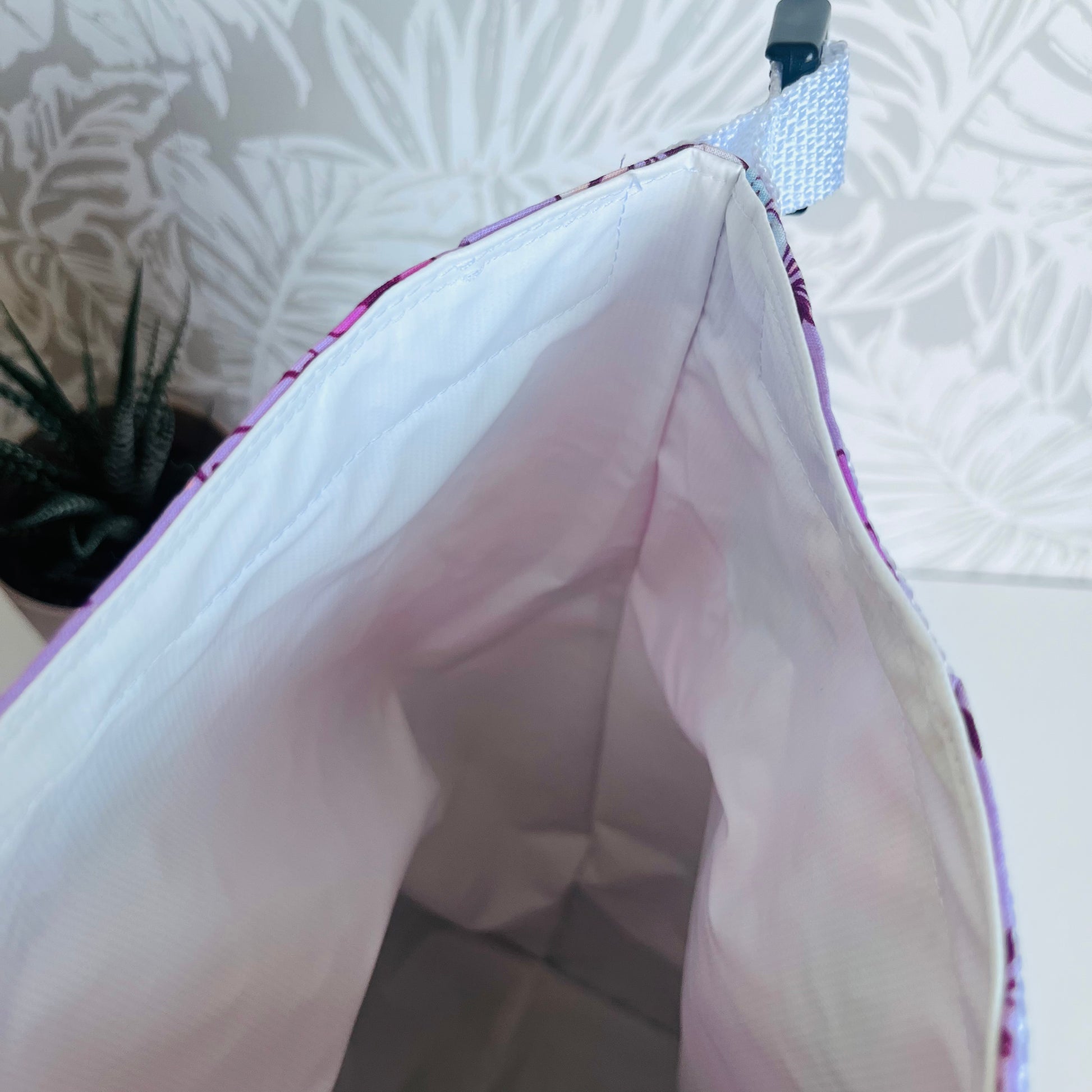 Bags are made with a waterproof food safe PUL fabric lining, 100% cotton exterior, thermal insulation, webbing and a plastic clip.