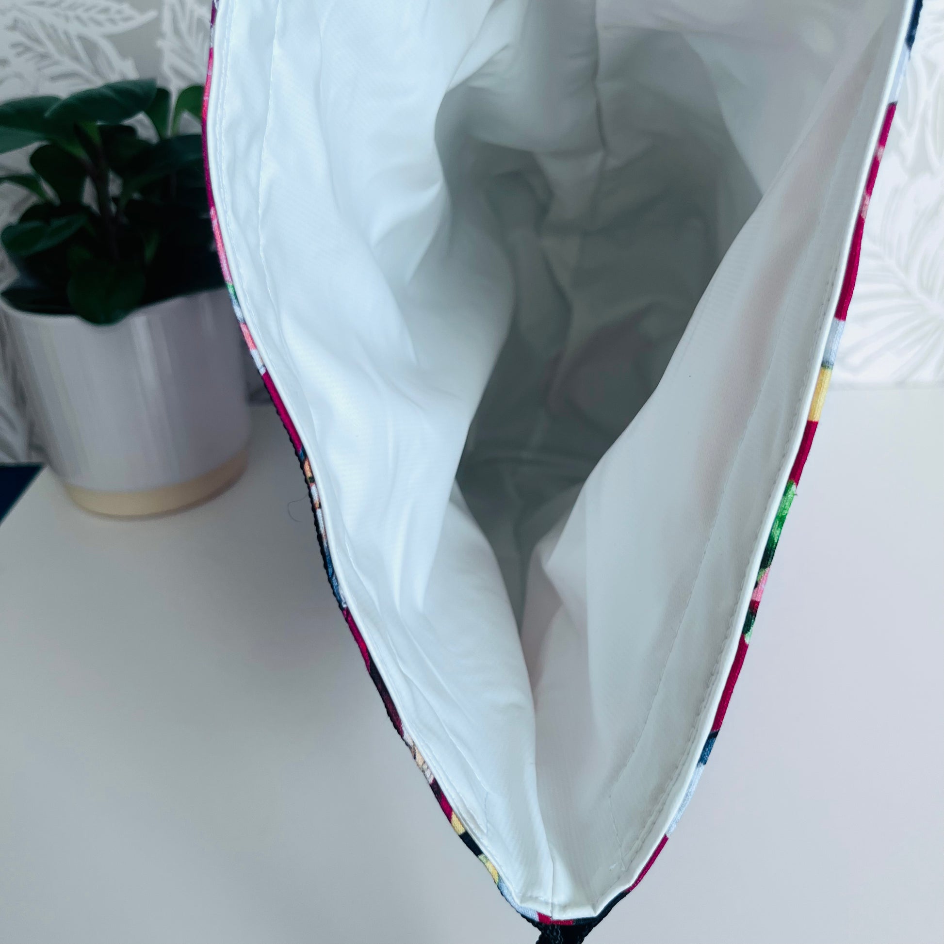 Bags are made with a waterproof food safe PUL fabric lining, 100% cotton exterior, thermal insulation, webbing and a plastic clip.