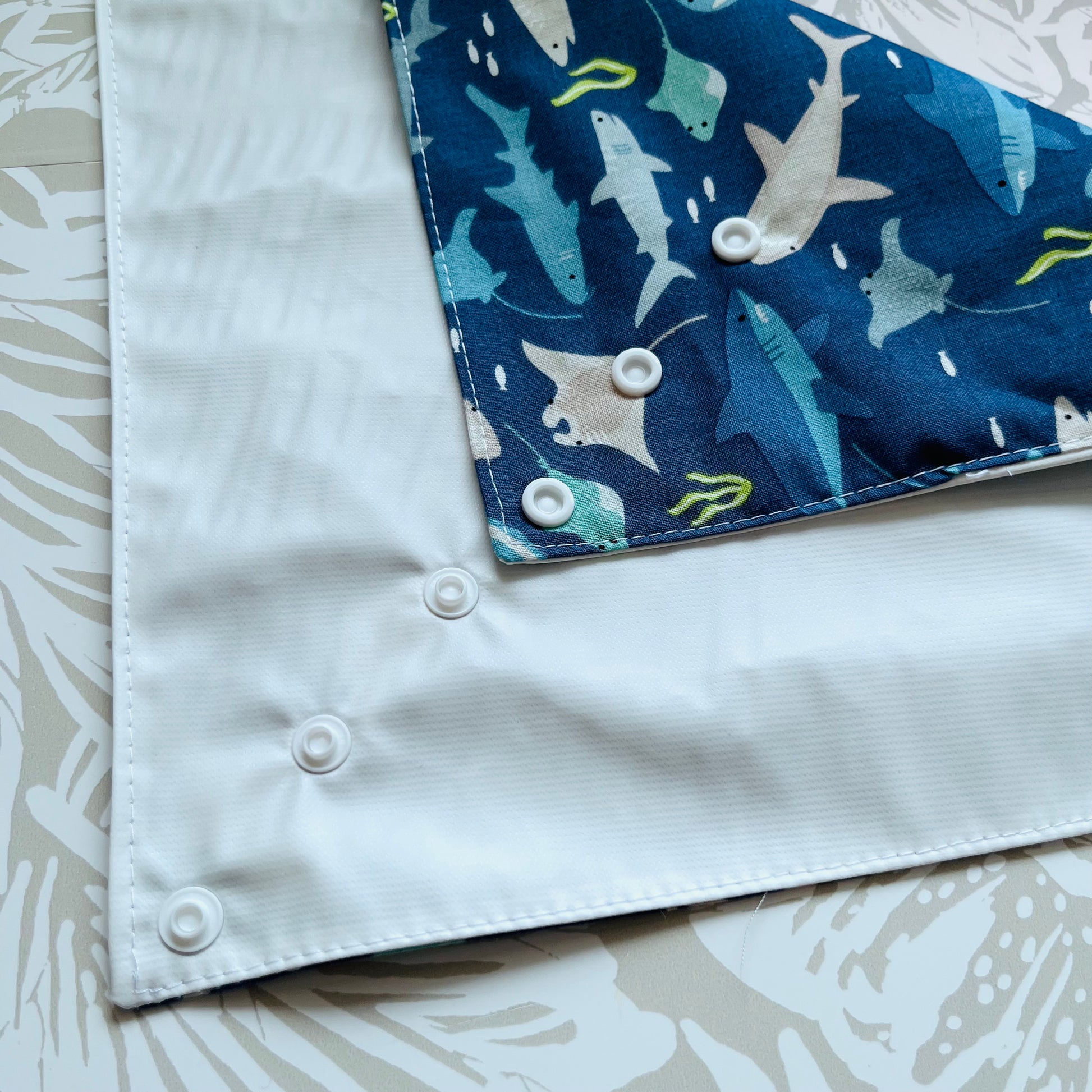 These wraps are made with 100% cotton, a food safe waterproof PUL fabric and plastic snaps