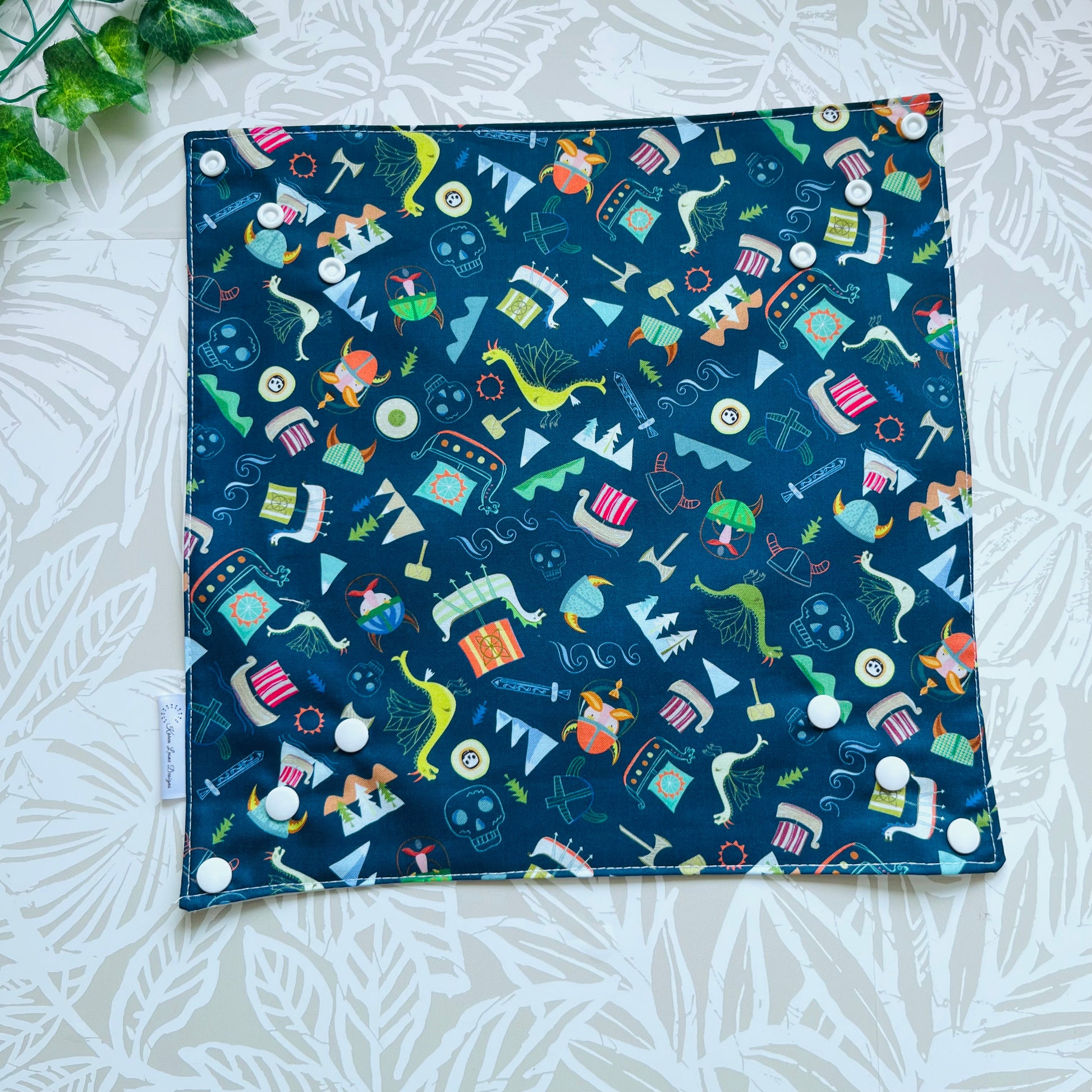 These wraps are a one size fits all. They are created with 3 snaps inside and the outside for maximum adjustment. Wrap up a sandwich, wrap, or sub and keep it fresh for the day. The lining acts as a placemat if you are working at an office desk or out on the trails at a picnic table.