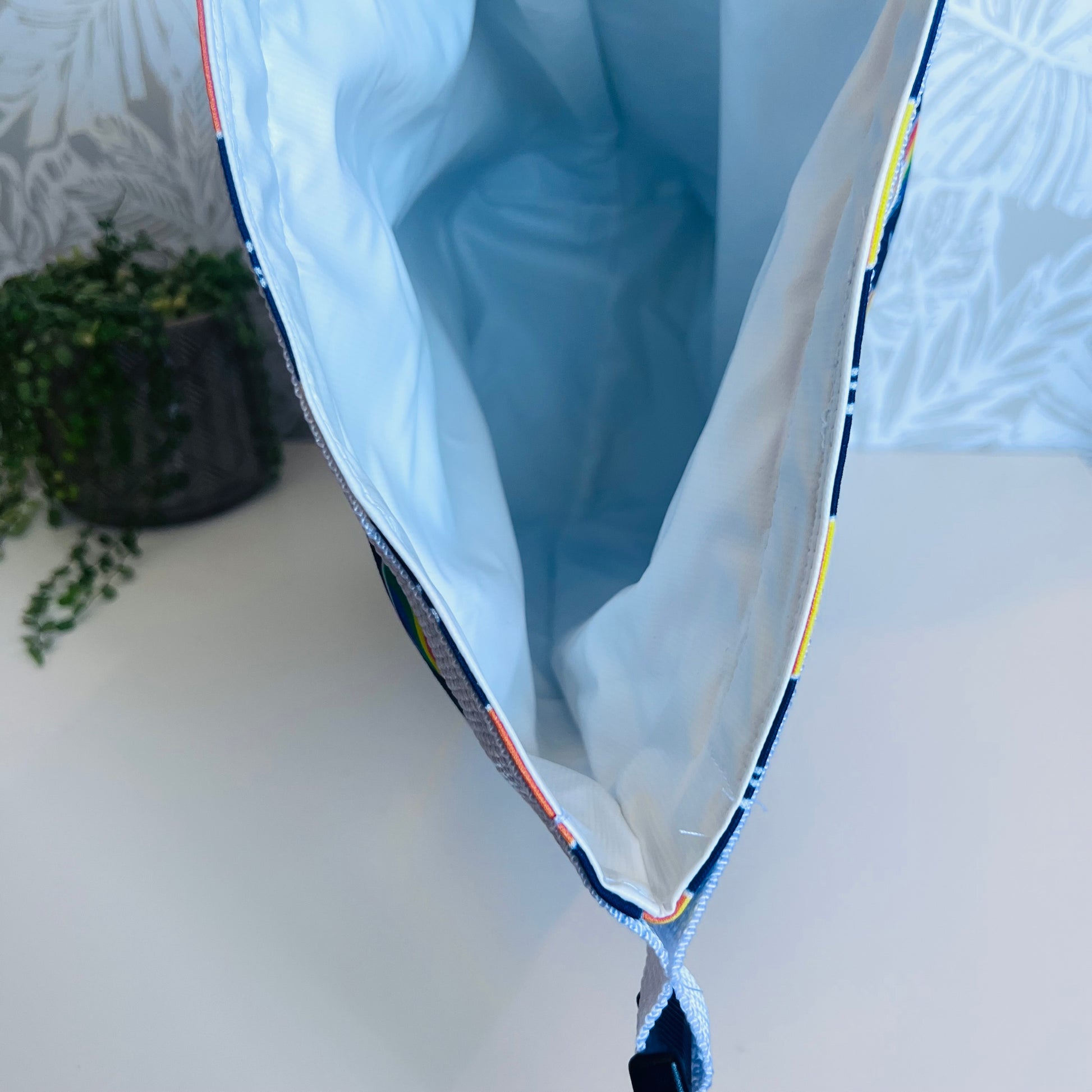 Bags are made with a waterproof food safe PUL fabric lining, 100% cotton exterior, thermal insulation, webbing and a plastic clip.