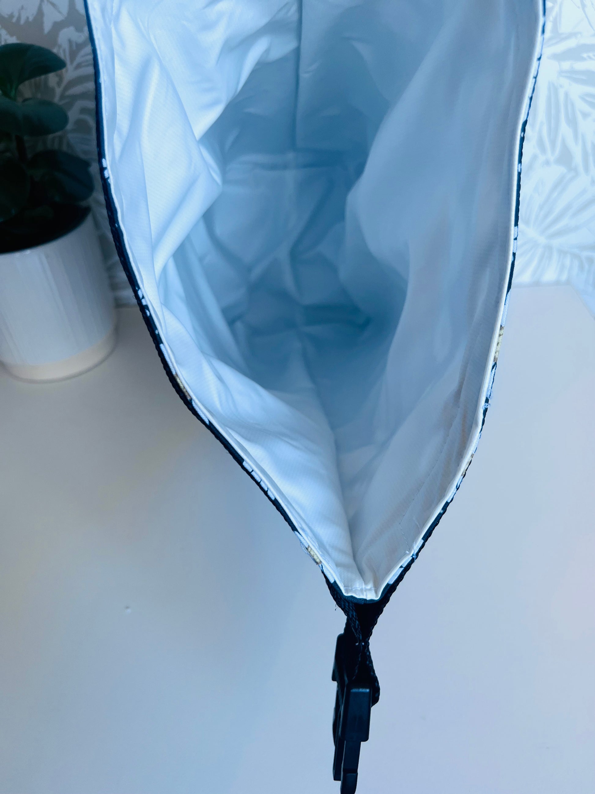 Bags are made with a waterproof food safe PUL fabric lining, 100% cotton exterior, thermal insulation, webbing and a plastic clip.
