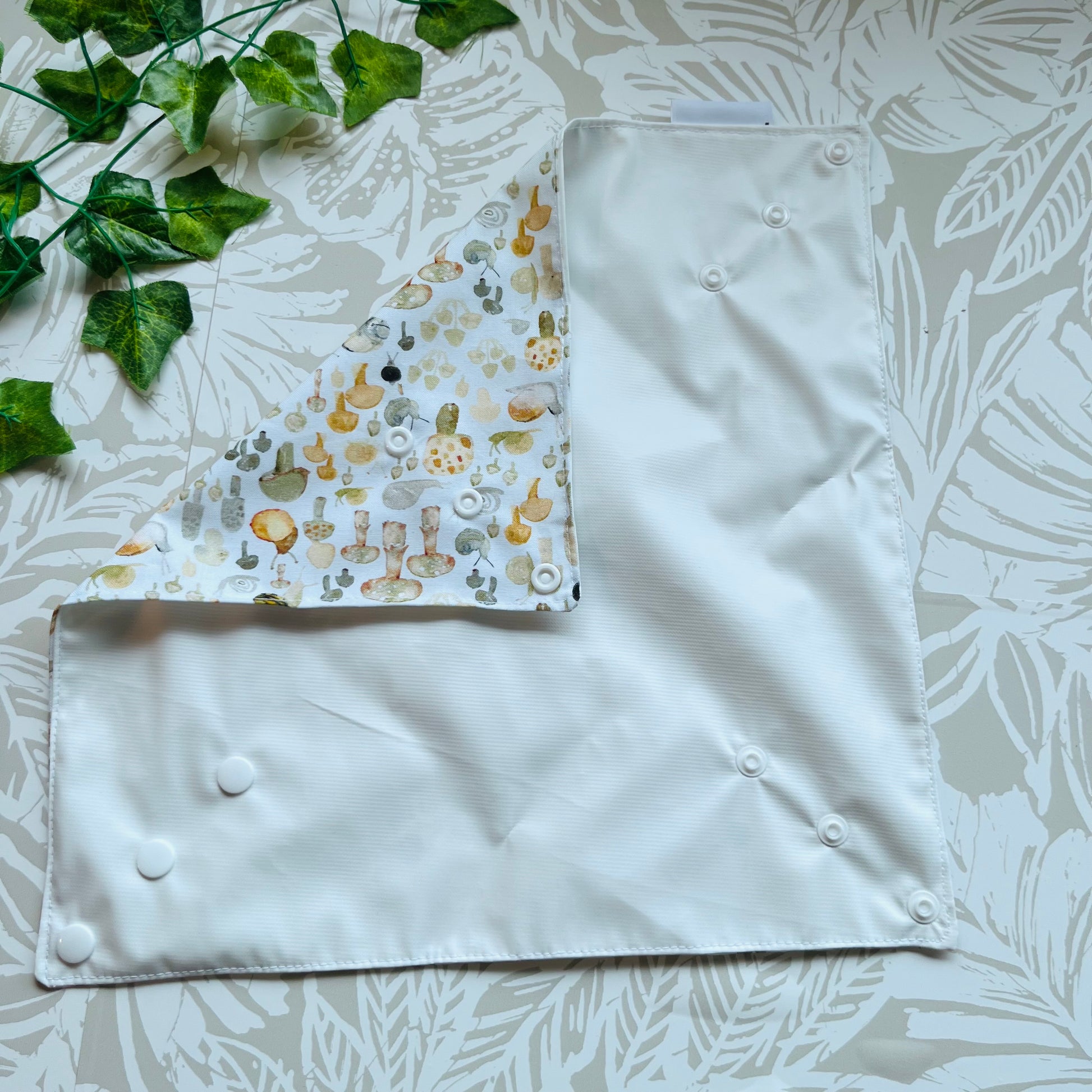 These wraps are made with 100% cotton, a food safe waterproof PUL fabric and plastic snaps