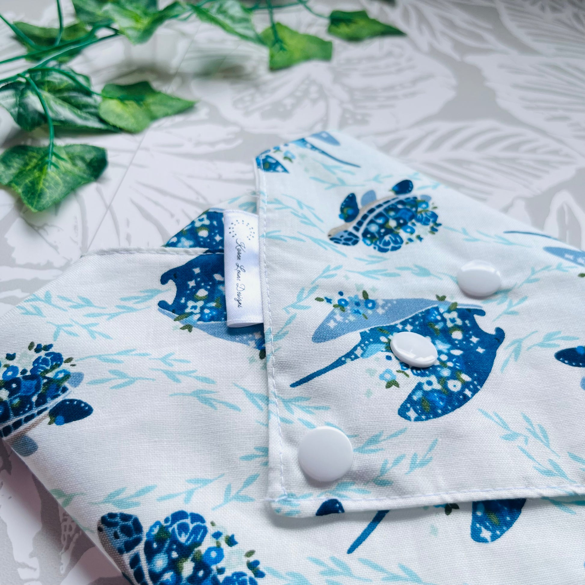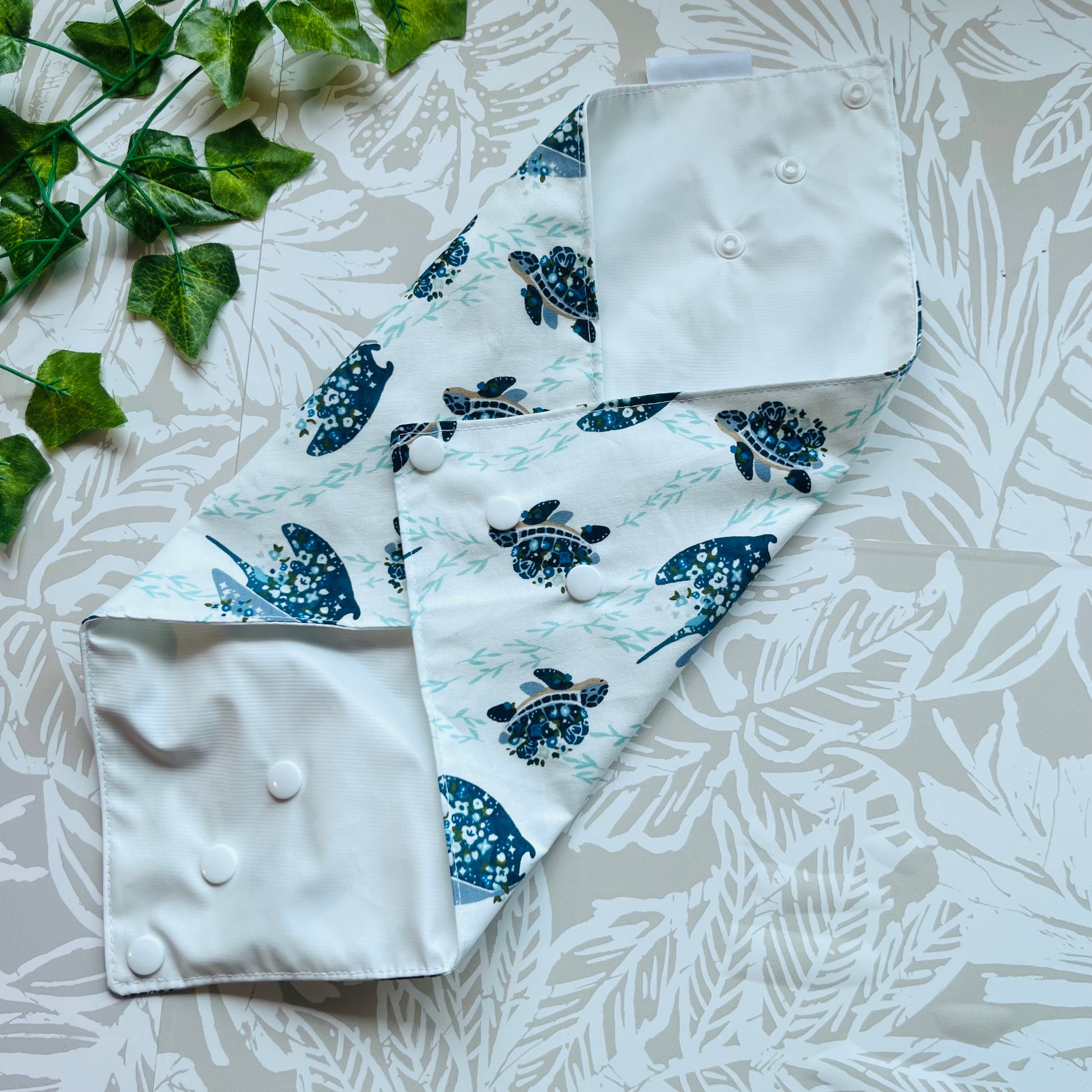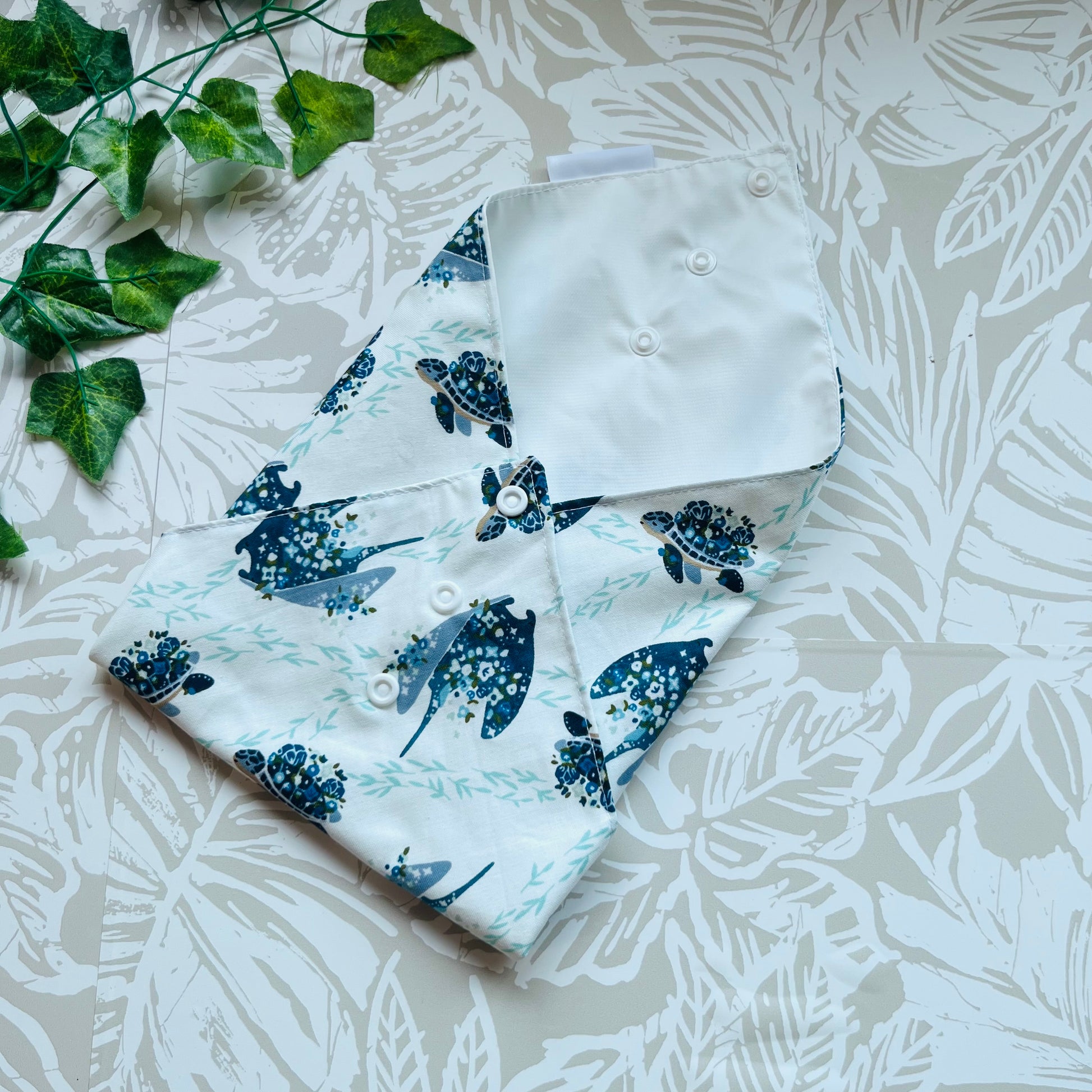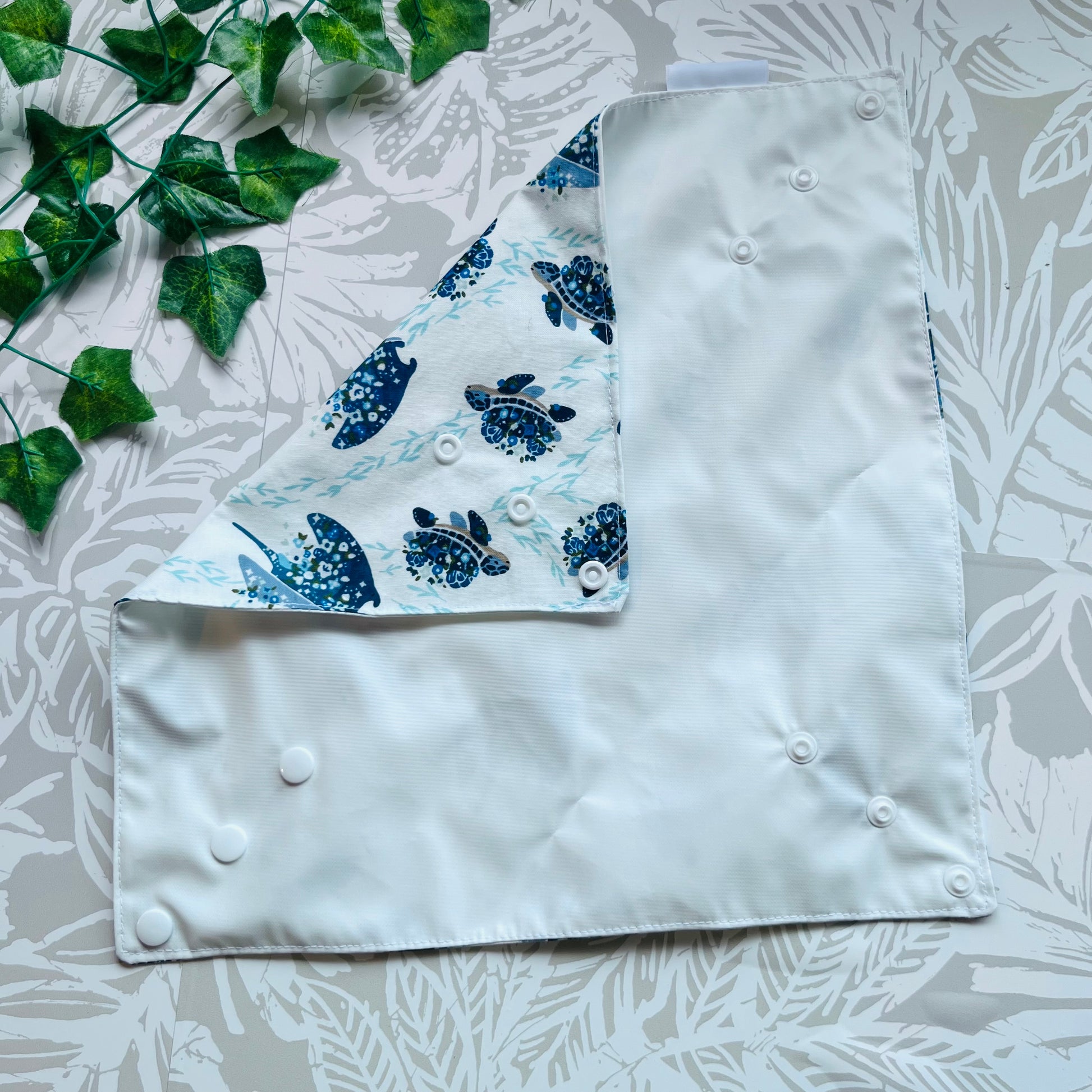 These wraps are made with 100% cotton, a food safe waterproof PUL fabric and plastic snaps