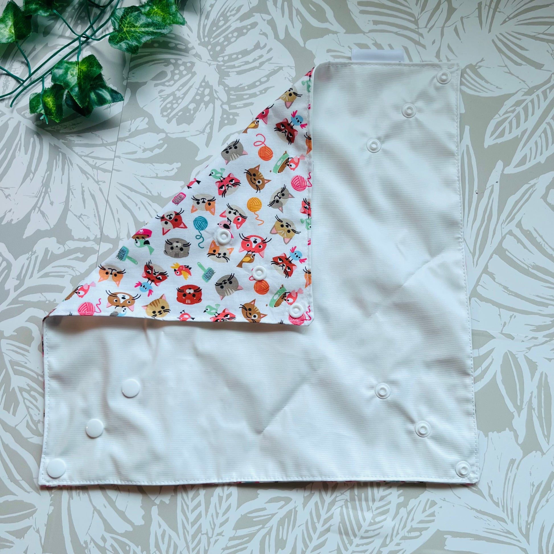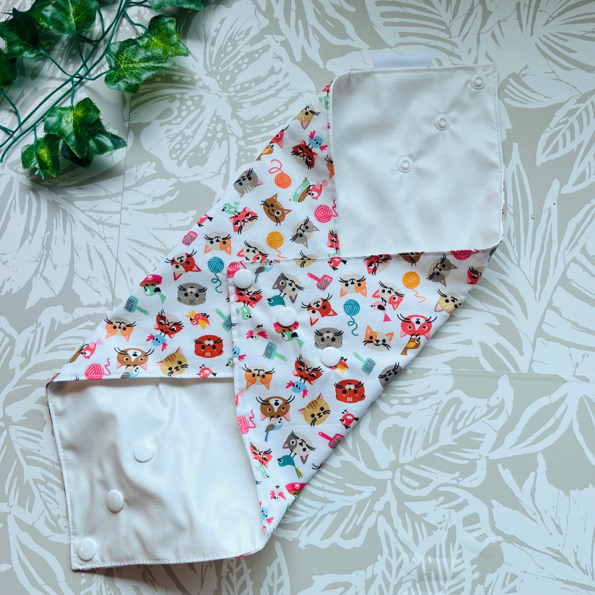 These wraps are made with 100% cotton, a food safe waterproof PUL fabric and plastic snaps