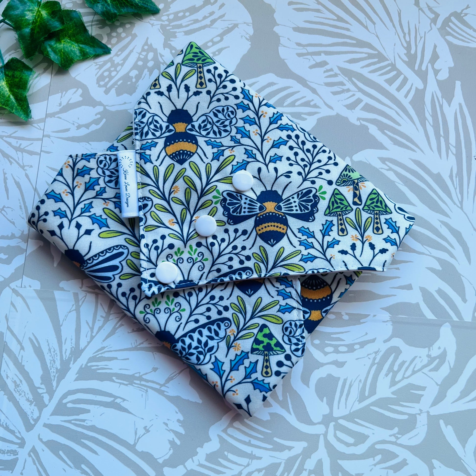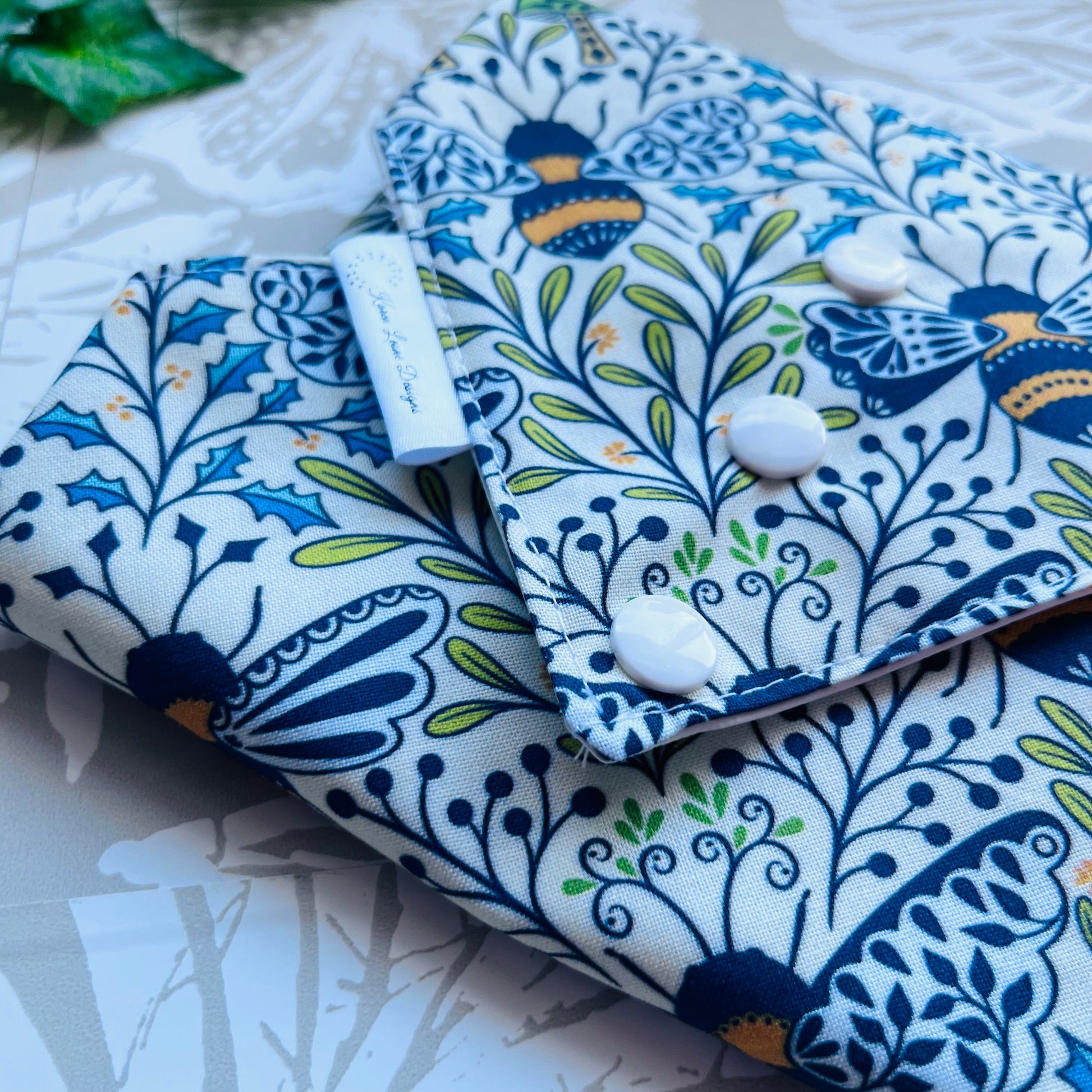 To keep my carbon footprint as low as possible I do not wrap in any plastic or paper packaging other than what is needed to ship. Inside you will find the bags along with one card with care instructions and a card that can all be easily recycled.